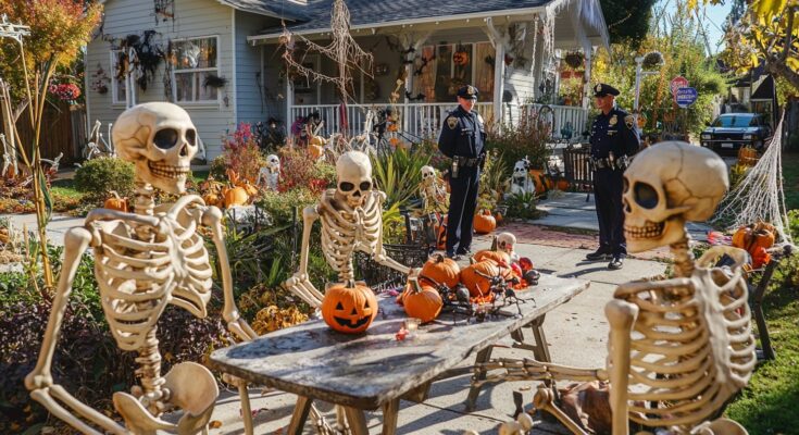 Salena Webb loves Halloween. She is a mother of four from South Carolina, and like many others, she celebrates by decorating her yard with Halloween items. Salena created a whole graveyard scene in her front yard, complete with ghosts, spiderwebs, pumpkins, a witch, tombstones, and skeletons carrying a casket. It took a lot of time to set up the display. But when her neighbor came to ask her to take it down, she agreed.