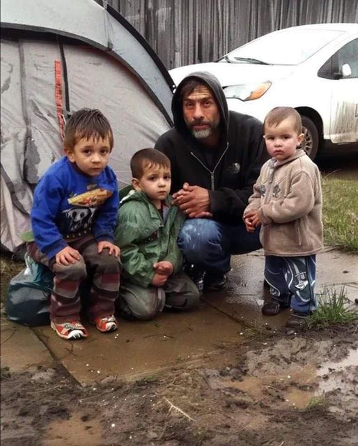 With no place to stay, Sean, who resigned from his job prior to his wife’s passing in order to be able to take care of her, ended on the streets. He and his kids moved to a tent at a tent community and struggled to make ends meet.